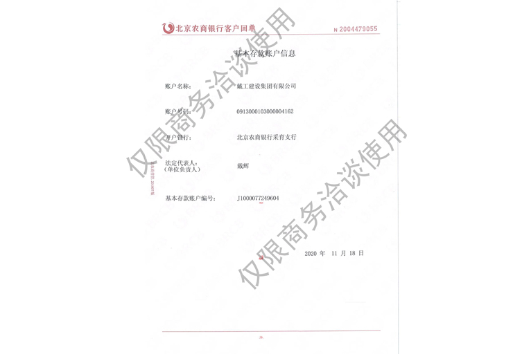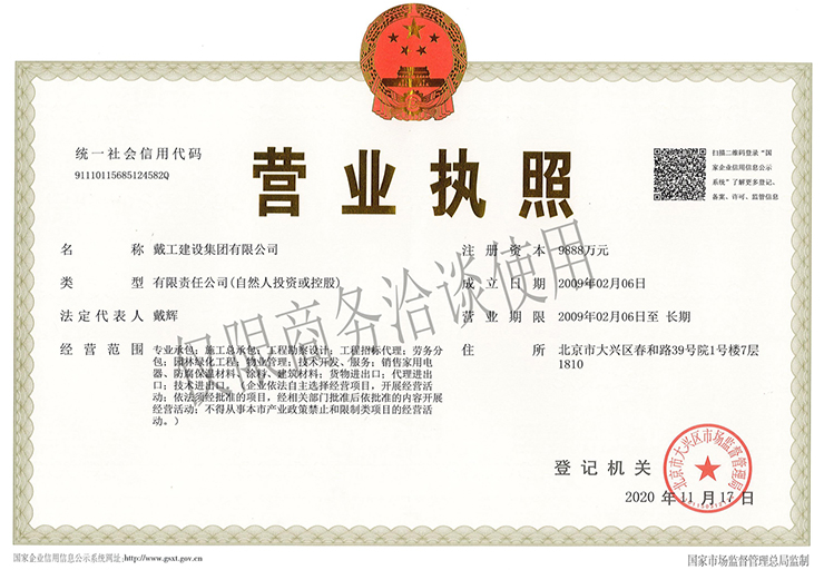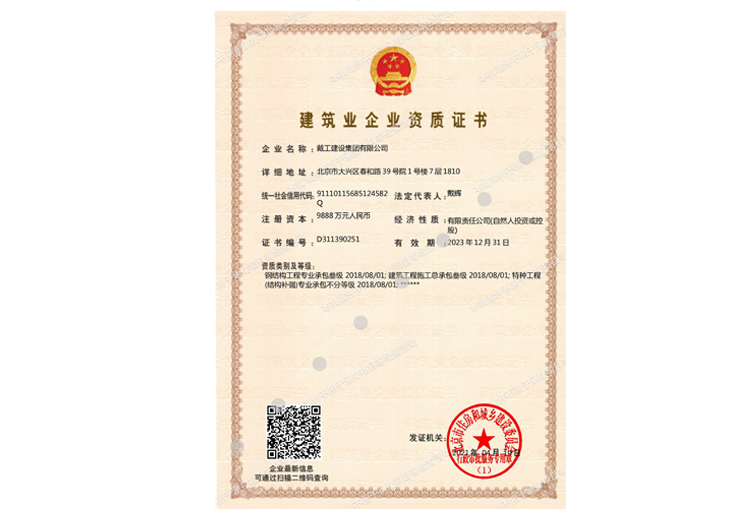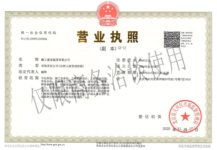 戴工建設集團有限公司,創(chuàng)建于2009年,注冊資本9888萬元人民幣。公司位于北京市大興區。具有建委頒發(fā)的建筑裝飾裝修專業(yè)壹級,防水保溫工程專業(yè)壹級,建筑幕墻專業(yè)貳級,消防設施專業(yè)貳級,電子與智能化專業(yè)貳級,特種工程(結構補強)專業(yè)不分等級,建筑機電安裝專業(yè)貳級,環(huán)保工程專業(yè)貳級,鋼結構專業(yè)貳級,建筑工程總承包貳級,建筑裝飾工程設計專項甲級,展覽陳列工程設計與施工壹級,展覽展示工程壹級...更多>>